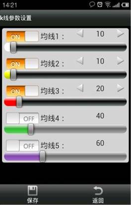 软件默认显示 3 条 K 均线,最多可支持 5 条均线,设置完成需点击“保存”。