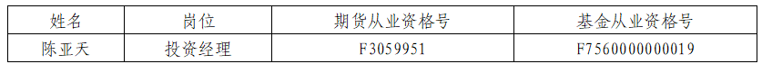 按照“兴业期货天赢CTA1号集合资产管理计划” (以下简称“本计划”)资产管理合同相关规定,管理人决定增聘陈亚天同志为本计划投资经理,自2021年3月11日起生效。
