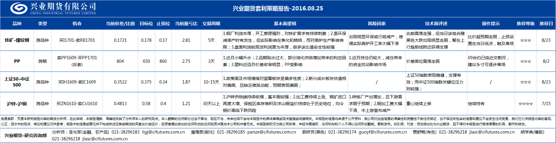 - 2016-08-25 兴业期货套利策略日报2016-08-25