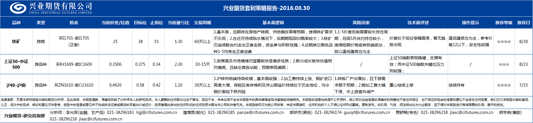 - 2016-08-30 兴业期货套利策略日报2016-08-30