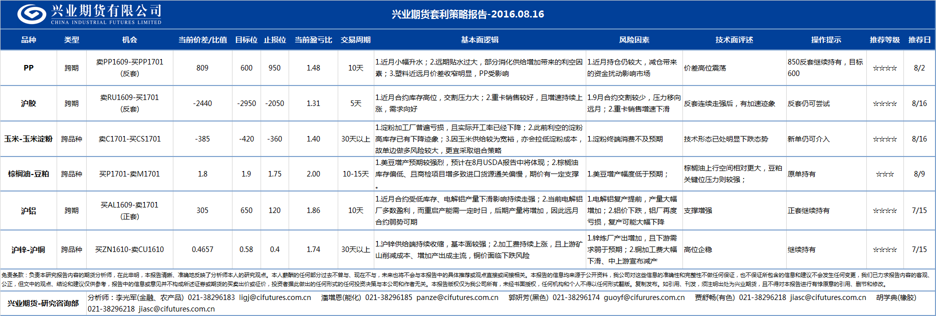 - 2016-08-16 兴业期货套利策略日报2016-08-16