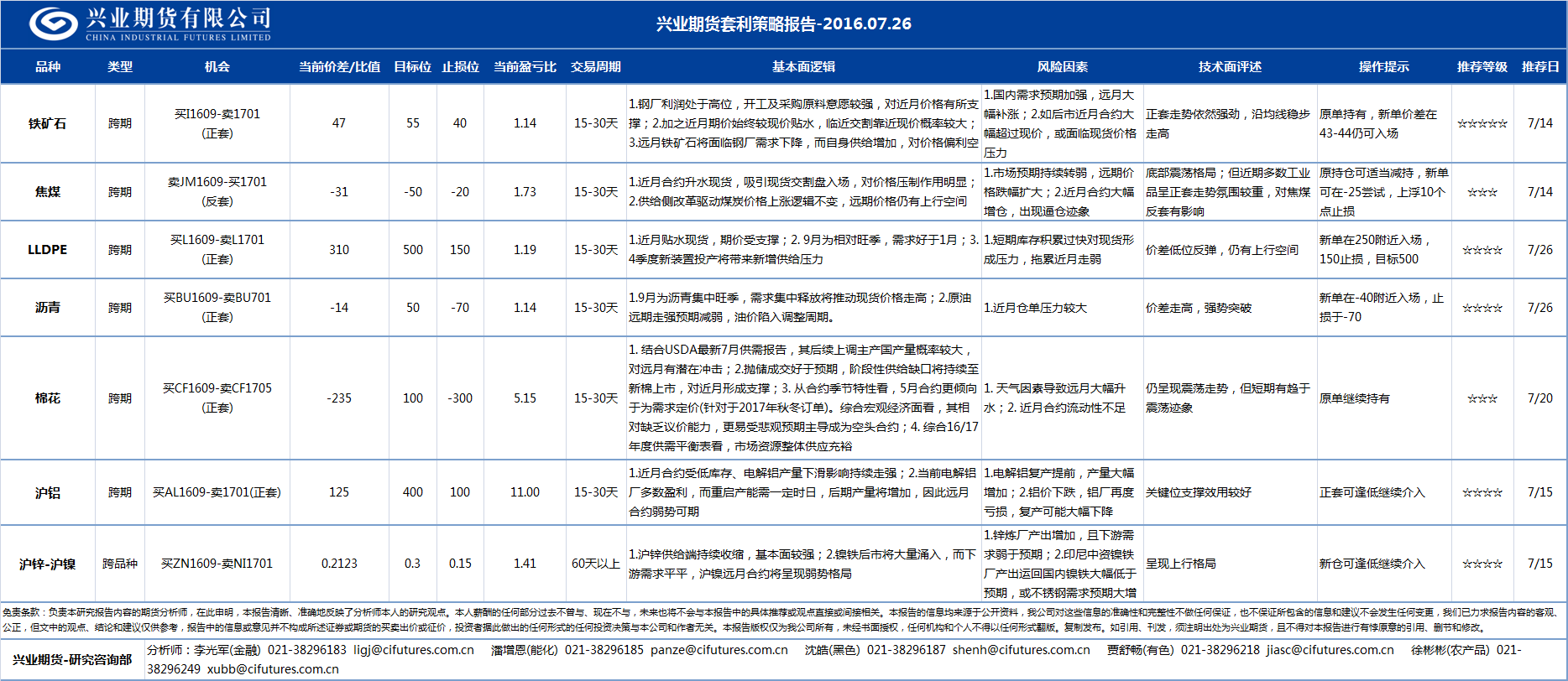 - 2016-07-26 兴业期货套利策略日报2016-07-26