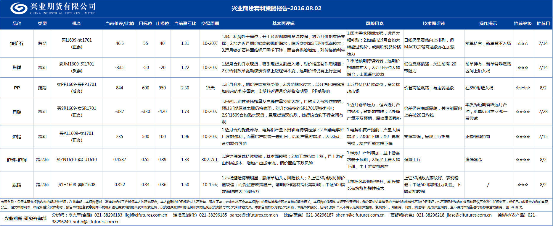 - 2016-08-02 兴业期货套利策略日报2016-08-02