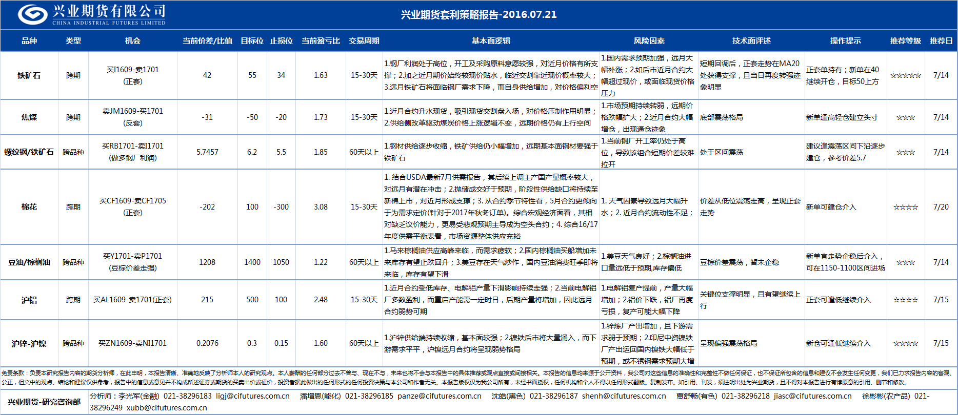 - 2016-07-21 兴业期货套利策略日报2016-07-21